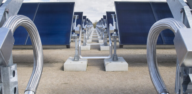 The Condat paper mill’s solar thermal power plant is the largest installation of its kind on an industrial site in Europe. It consists of 264 solar thermal collectors with solar trackers that follow the sun’s path throughout the day, thus maximizing heat production. The heat produced and stored is then integrated into the steam production circuit used for drying the paper.